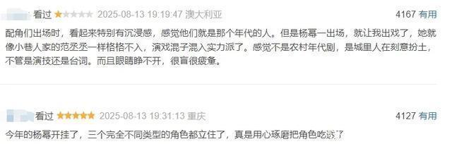 播出之后,网上的评价或然的南北极,给出一星和五星的网友果然差未几。 以为杨幂演的差的,认为她演技出戏万博manbetx登录入口,其他错乱出场有千里浸感,她格不相入,台词演技皆弗成,但以为杨幂演的好的网友以为,此次杨幂是真把脚色吃透了。